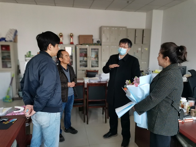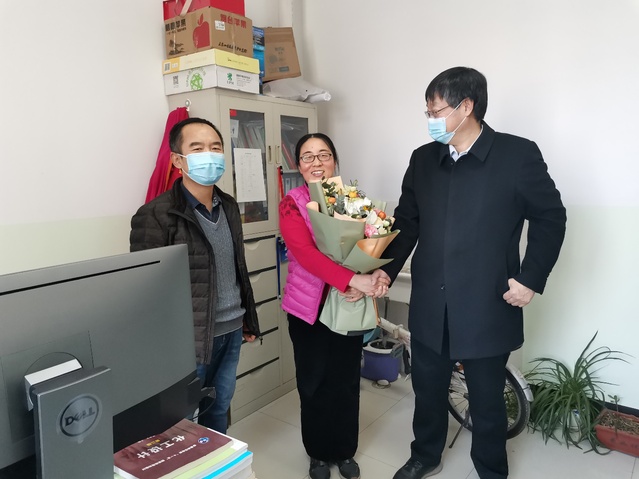 3月8日一早,学院工会开展“美丽绽放”三八妇女节活动,学院党委书记张永宁、工会主席孙昱东等一行人慰问了辛勤工作在一线的女教工,并向他们送去了最温暖的祝福,希望她们继续保持爱岗敬业、锐意进取的工作热情,以更充沛的精力和高昂的斗志,全身心的投入到紧张的教育教学工作中去。