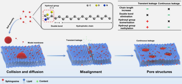 1Mu Yonghang(学生一作), Wang Zi*, Song Linhua, et al. Modulating lipid bilayer permeability and structure: Impact of hydrophobic chain length, C-3 hydroxyl group, and double bond in sphingosine[J]. Journal of Colloid and Interface Science, 2024, 674: 513-526.