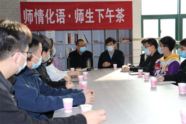 4月7日下午,太阳成集团tyc33455在工科楼A座青年之家举办“师情化语·师生下午茶”第三期活动,生物与能源化工系主任王继乾、学院党委副书记徐光辉与能源化学工程专业学生代表围绕学风建设、人才培养等问题进行交流。
