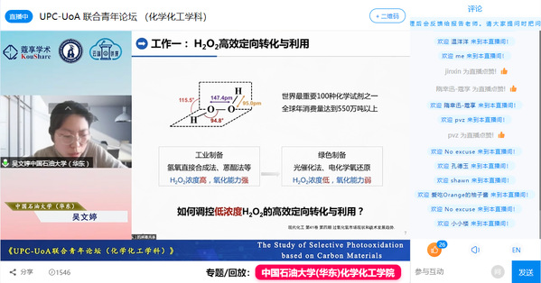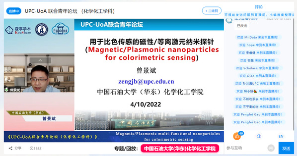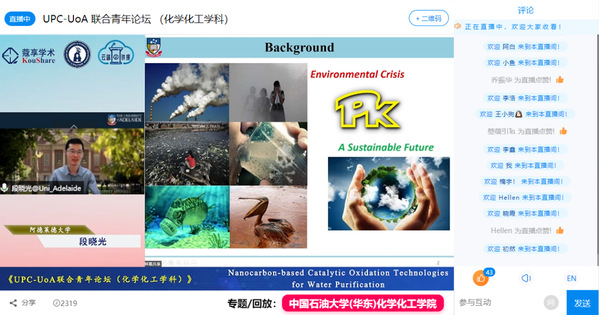 4月10日下午,学院联合联合阿德莱德大学化工学院共同举办了化学化工学科青年学者联合论坛。本次论坛依托学院“云端讲座”平台进行全网直播,累计吸引近5000人在线关注。