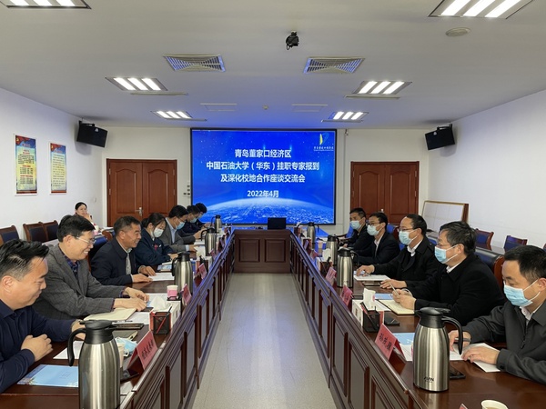 董家口经济区管委党群工作部、经济发展部、应急管理部、综合团部、投资促进部、经济发展部,海湾化学、双星轮胎、金能化学、益凯新材料等企业代表,学校科技处、合作发展处,选派董家口经济区挂职教师参加座谈。