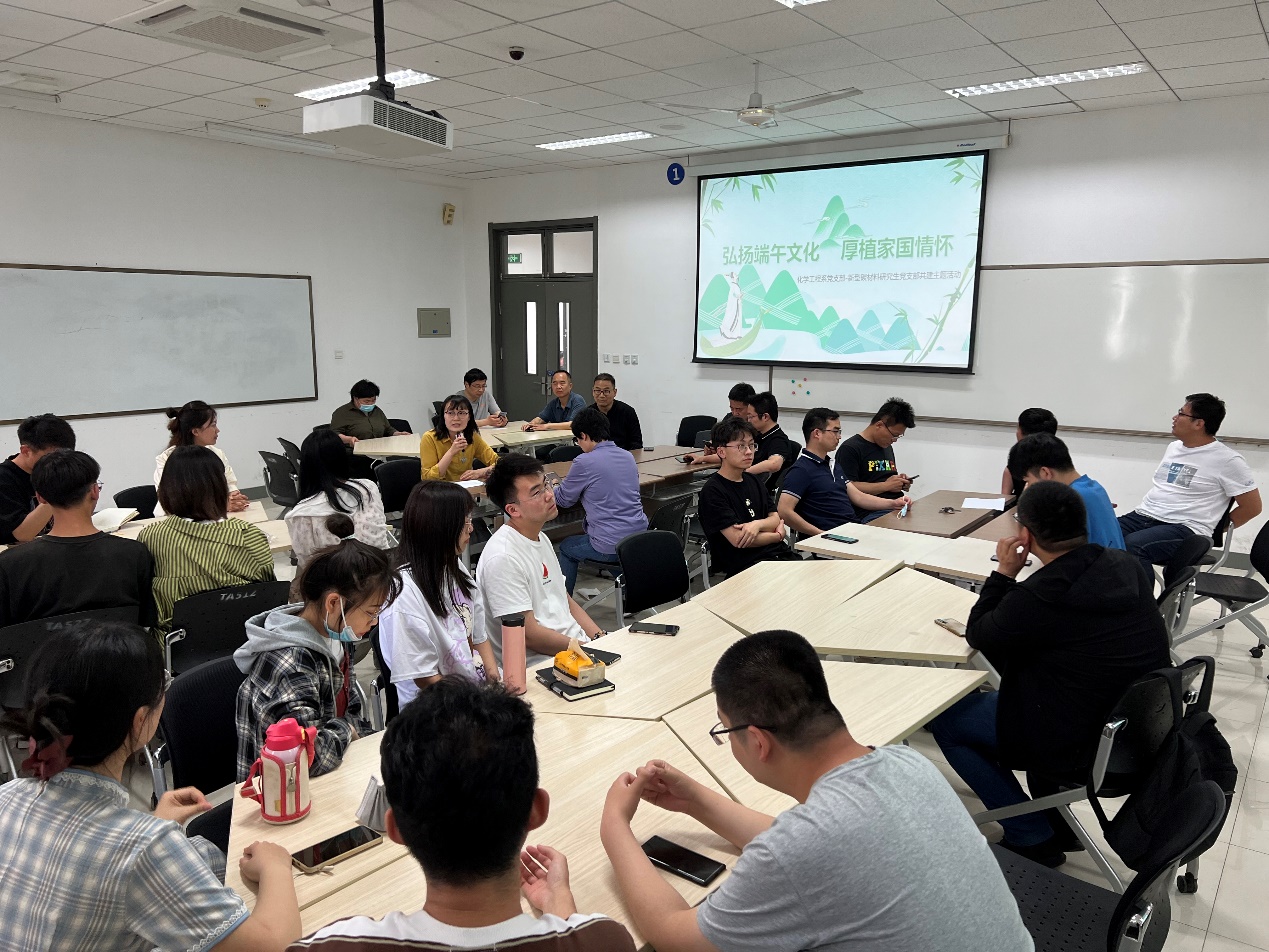 值此端午佳节来临之际,为进一步激发爱党、爱国热情,5月31日,化学工程系党支部联合新型碳材料研究生党支部在综合楼512开展“弘扬端午文化,厚植家国情怀”主题党日活动。活动由支部书记于筱溪主持。
