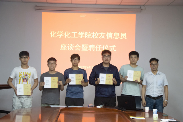 会议最后,2022届毕业生董江龙等30人被聘任为校友信息员,与会人员为信息员颁发聘书并合影留念。