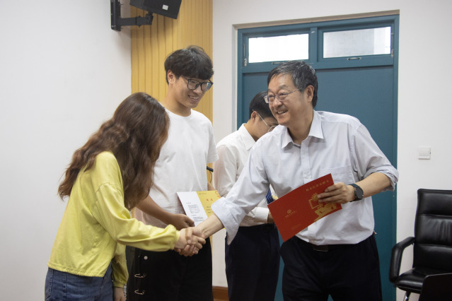 学院党委书记张永宁讲道,学院校友工作一直走在学校前列,也涌现出无数优秀校友,他对学院未来发展充满力量与信心。他号召校友信息员在离校前参观一次校史陈列馆,重温学校、学院的发展历程,感受自身使命重大。他指出,聘任校友信息员是对同学们的信任,也是同学们自身能力的证明,更是一份责任与担当。张永宁谈道,校友信息员是学院的形象大使,是传承者、参与者与创造者。他向广大信息员提出三点希望:一是希望大家当好“宣传员”,把母校、母院最新的发展成就和动态传播给广大校友;二是当好“信息员”,与班级同学保持密切联系,掌握最新情况,帮助更新校友信息数据库;三是当好“联络员”,为校友与校友、校友与母校之间的联系交流牵线搭桥,为学校和学院的发展积极建言献策,学院也将积极为广大校友提供终身服务。
