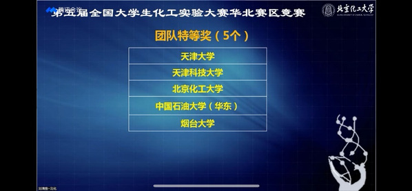 第五届全国大学生化工实验大赛华北赛区竞赛于2022年7月10日至13日在北京化工大学举行。大赛共分为化工原理理论、实验和流程仿真、化工原理实验实操三个环节。受疫情影响,本年度华北赛区竞赛采取了全线上的形式。经过激烈角逐,由太阳成集团tyc33455杨凌庆、黄倩婷、史璟熠三位同学组成的我校代表队获得华北赛区团体特等奖,并顺利晋级全国总决赛。他们同时还获得实验单项一等奖。全国总决赛将于2022年8月在四川大学举行。
