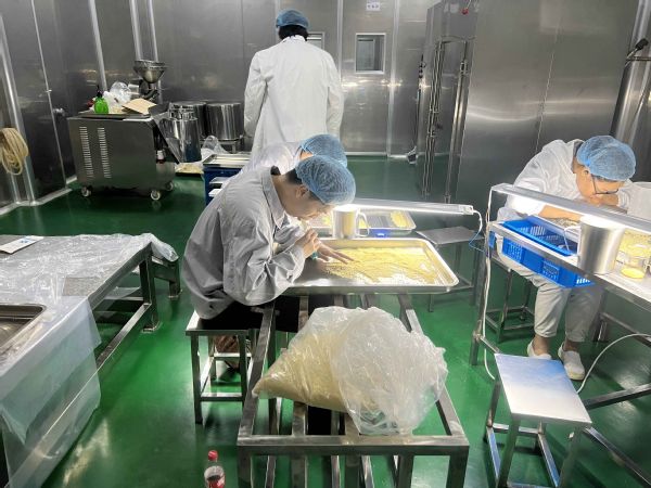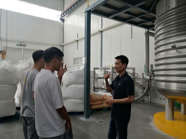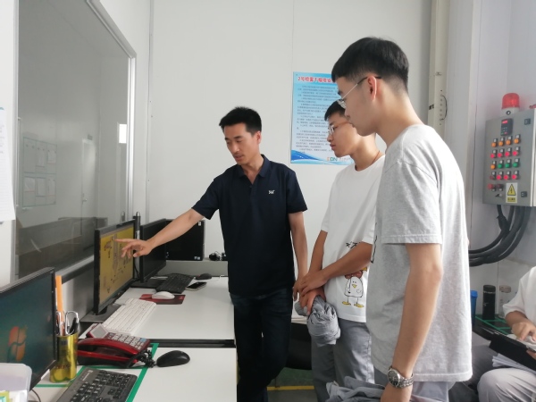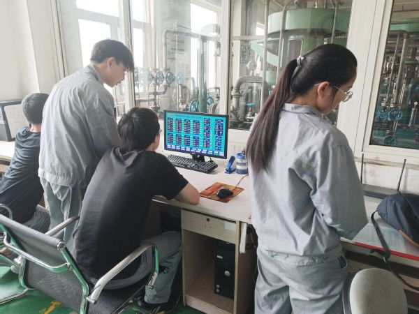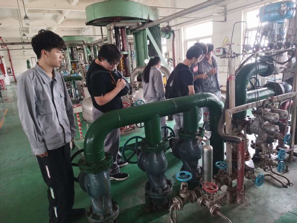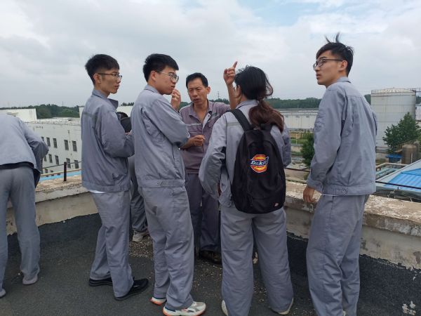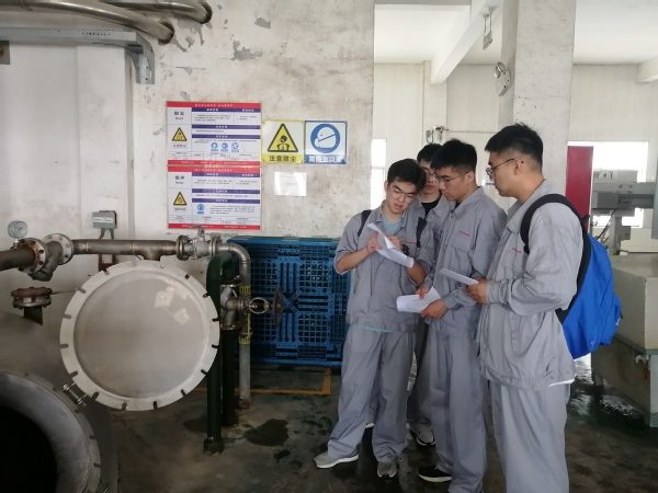 公司工厂共六个车间,43名学生分为6组轮换实习,以确保每个学生都能对生产流程有整体的了解。学生自7月1日起在发酵一、发酵二、益生菌、品控、包装、提取六个车间进行实习。在发酵一,发酵二车间,学生了解并熟悉了发酵管路及其发酵设备的原理和作用;益生菌车间主要学习益生菌饮品的制作过程;品控车间用于酶活的检测;通过在提取车间的实习,学生掌握了从发酵液中提取出需要的料液的过程。在实习开始前,车间主任向学生一一介绍了车间运行基本情况和各设备的基本原理,车间班长则带领学生参观车间,在参观过程中,学生如果有问题时也会及时请教,车间班长耐心解答,营造了积极的讨论氛围。整个实习过程中,车间的闷热和工艺流程的复杂并没有减弱能化专业学生的学习热情,他们积极努力,对各个车间管路和器械的原理和作用产生了更深入的认识和思考,同时,学生们积极动手,对劳作的不易和艰辛有了深切的体会。