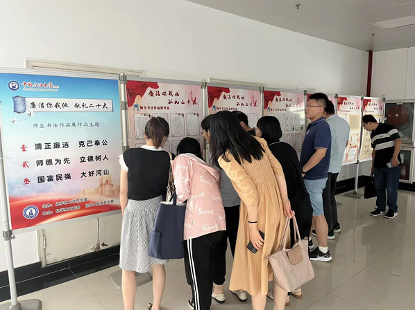 近日,为深入推进学院党风廉政建设工作,由化学工程系党支部和化学系党支部联合组织“廉洁你我他,献礼二十大” 师生书法展,师生书法作品在工科楼A座一楼大厅展出,吸引众多师生驻足参观,学习。