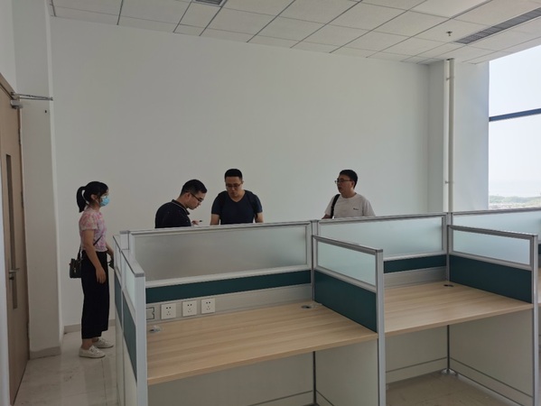 验收组实地考察了国重楼全部22个学生办公室,对每个办公室的工作位数量、摆放布局进行了全面细致检查和测量。针对个别房间存在的隔板玻璃破裂、过道较窄、门口工作位难以利用等问题,验收组向施工单位提出了整改意见。目前国重楼已完成500个固定工位的安装,剩余工位和流动工位正在紧张施工中。