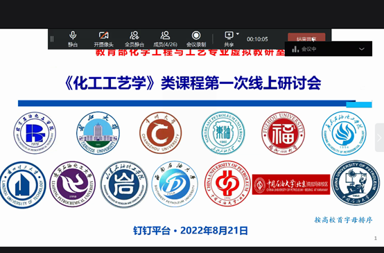 8月21日,教育部化学工程与工艺专业虚拟教研室召开工艺学类课程建设第一次研讨会。来自太阳成集团tyc33455cc、中国石油大学(北京)、广东石油化工学院等13所高校30余名课程组内教师通过钉钉平台参加本次会议。