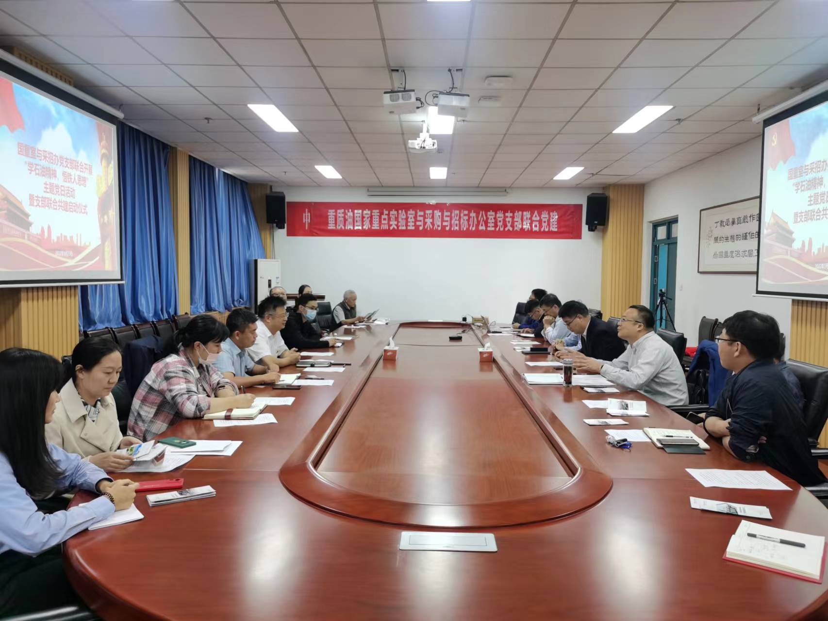 9月23日,重质油国家重点实验室党支部联合采招办党支部共同开展“学石油精神、悟铁人思想”主题党日活动,并举行两支部党建联合共建启动仪式。重质油国家重点实验室党支部书记柴永明,主任田原宇,采招办党支部书记王治平,及两支部的先进党员代表出席会议。大会由柴永明书记主持。