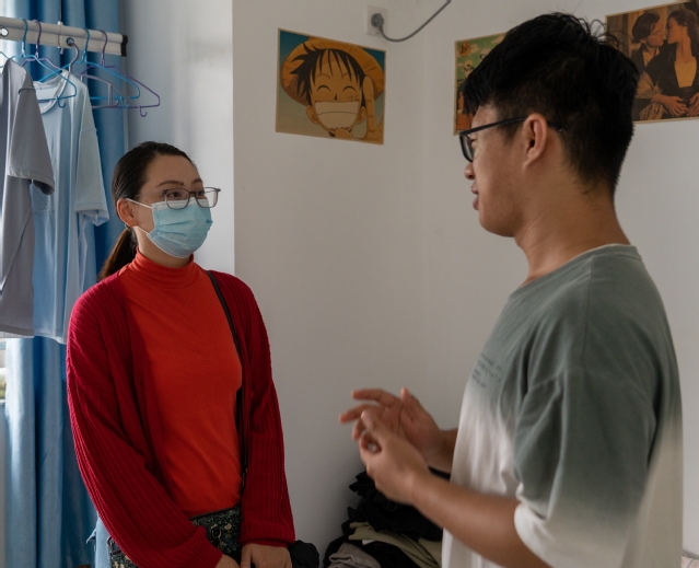 会后,薛慧走访了古镇口校区研究生宿舍,探查了宿舍卫生和可能存在的安全隐患,并与同学们进行了亲切的交流。