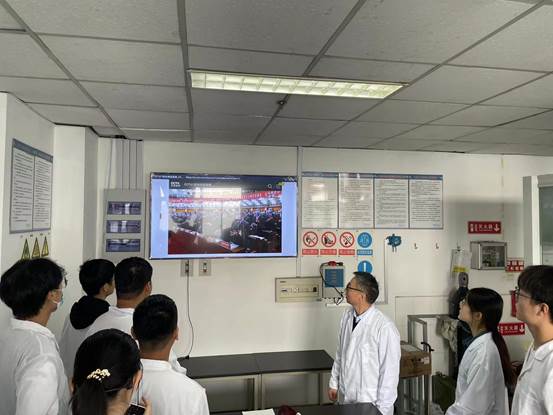 在认真聆听完大会报告后,全体党员欢欣鼓舞、倍感振奋、反响热烈。实验课上,支部老党员沐宝泉和学生一起观看了二十大开幕盛况,学习领悟习近平总书记的报告,师生同上思政课。支部青年党员严文娟表示:“在过去的五年里,在中国共产党的领导下,全国各族人民在极其严峻的国际形势下,在发展经济民生、抗击疫情以及脱贫攻坚取得了一系列举世瞩目的成就。作为一名党员,我要牢牢记住习近平总书记的谆谆教导,在大学生人才培养和科学技术研究方面为祖国的发展贡献自己的青春力量!”