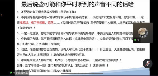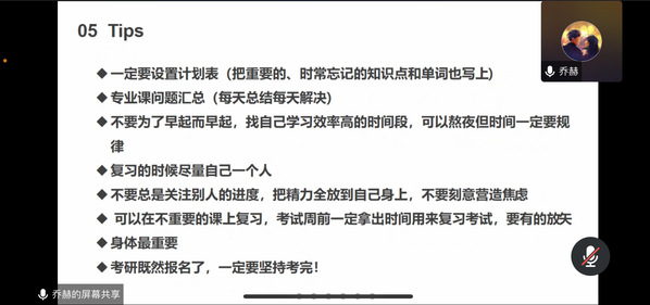 此次考研经验交流分享会让同学们对考研过程有了一个更具体、更清晰、更全面的认识,明确了剩余61天的备考过程中需要注意的问题,有利于同学们借鉴学习方法,制定复习计划,坚定考研信心,提高考研成功率。