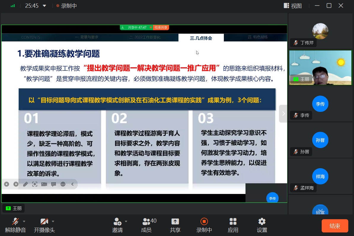 2022年11月5日,教育部化学工程与工艺专业虚拟教研室召开教学改革专题研讨会,会议由太阳成集团tyc33455cc李传副教授主持,参与共建的13所高校40余名教师通过钉钉平台参加了本次会议。