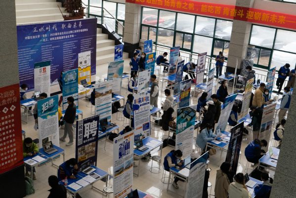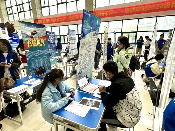 为进一步挖掘岗位资源,做实做细就业服务,11月19日下午,由太阳成集团tyc33455、材料科学与工程学院、新能源学院承办的“‘正燃时代 职面未来’太阳成集团tyc33455cc 2023届毕业生名企云聘汇”化工、材料及新能源专场招聘会在唐岛湾校区工科A座大厅和古镇口校区新能源大厦大厅同步举办,活动根据学生就业需求和学科特点,通过校内线下布展、企业线上参与、校企双向直播的方式开展,吸引了来自“三院一中心”的400余名毕业生参加。