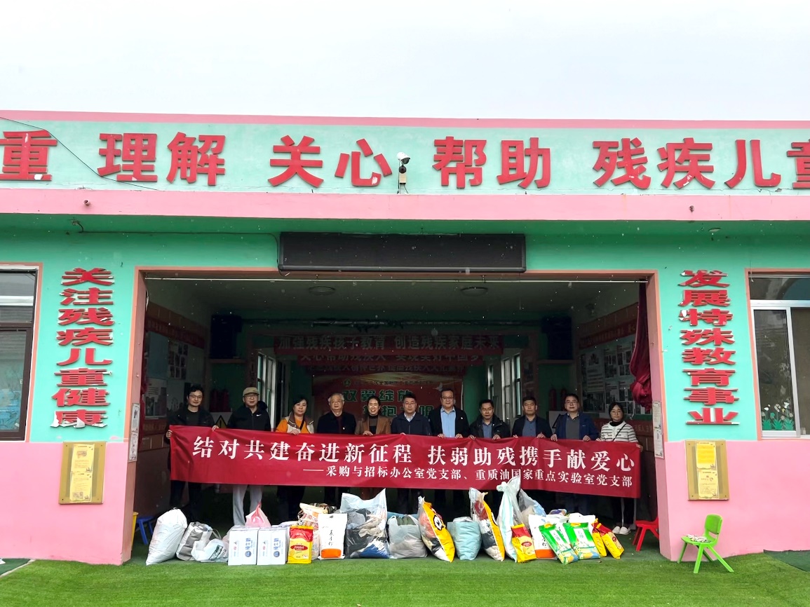 11月19日,重质油国家重点实验室党支部联合采购与招标办公室党支部共赴青岛西海岸新区东方聋儿语训中心,开展“结对共建奋进新征程,扶弱助残携手献爱心”支部联合共建主题党日活动。东方聋儿语训中心是面向聋哑、脑瘫、自闭等特殊儿童的爱心学校,绝大多数收留的孩子家庭情况特殊、家境十分困难。重质油国家重点实验室、采购与招标办公室党支部联合发起爱心捐赠活动,动员本单位教职工进行旧衣物捐赠,并且购买了饼干、大米、面粉、牛奶等日常生活用品,在寒冬中给这些特殊的孩子们送去了关爱和温暖。语训中心校长一一为大家介绍了校园的基本情况、以及在办校过程中遇到的各种阻碍和重重困难,感谢石油大学对中心的帮扶,带着老师们看望孩子们。孩子们虽然身有残疾、但是孩子们表现出了与人交流的渴望。回程的大巴车上,老师们纷纷表示,被此次爱心捐赠活动深深触动,今后将更多地组织并参与到弱势群体的帮扶工作中。习近平总书记在二十大报告里也提出,我们深入贯彻以人民为中心的发展思想,在幼有所育、学有所教、劳有所得、病有所医、老有所养、住有所居、弱有所扶上持续用力。关注和帮助弱势群体要从每个人做起,党员更应该发挥模范带头作用,为社会的美好明天贡献力量。