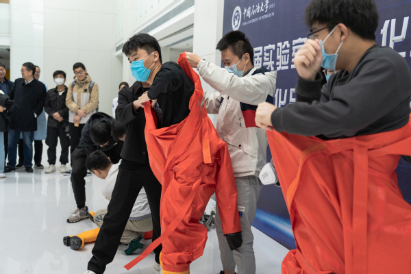 会议尾声,邀请青岛海尔生物医疗公司李公海对实验室危化品泄漏应急演练活动进行讲解,并由太阳成集团tyc33455副院长陈小博担任演练总指挥,带领与会人员于国家工程实验室B212开展危化品泄露应急处置及逃生演练等内容在内的实验室应急救援实操演练。