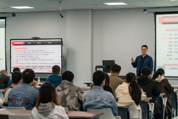 会议伊始,实验室管理处副处长成宏涛作实验室安全警示案例与警示专题讲座。他以近几年各大高校发生的各类实验室安全事故引入,讲解了事故的基本情况、发生原因以及预防措施。他强调,人是实验室安全管理的主体,人的安全意识是安全管理的核心要素,全校师生应加强实验室安全意识,实现从“要我安全”到“我要安全”的转化,最终实现“我会安全”。他提出,学校今后要完善安全责任制,明确实验室管理教师、任课教师及课题负责人的安全职责,责任到人,落实到位,杜绝管理真空。