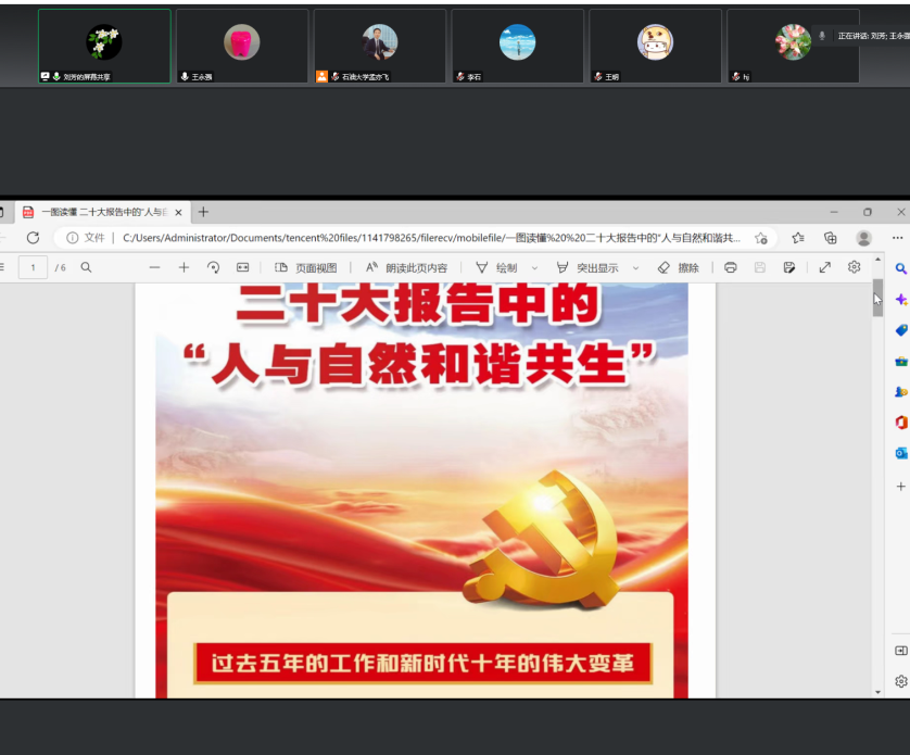 通过学习,老师们纷纷表示将继续认真学习党的二十大报告,深刻把握大会精神,为推动绿色发展、促进人与自然和谐共生贡献出自己的力量!会上,老师们还研讨了疫情形势下理论教学和实践教学新模式的改革,为提高教学质量、提升教学水平、促进疫情形势下教学工作的有效开展献言献策。