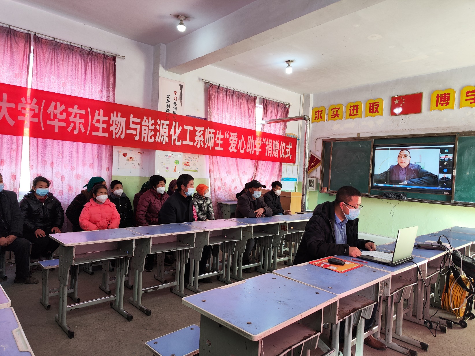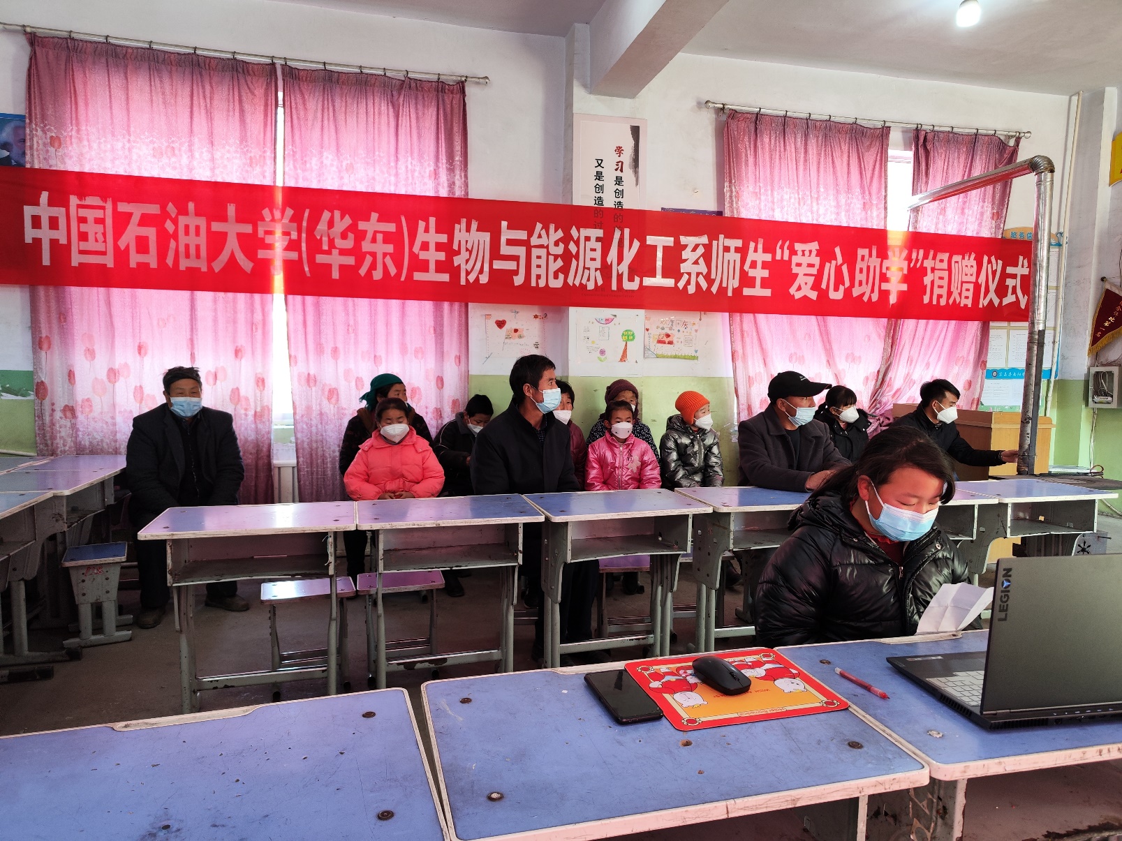 2022年12月26日下午,一场充满的人间温情的“爱心传承,点亮希望”助学捐资仪式在陇南市宕昌县南阳二小举行,由于地域原因,本次捐助活动采取线上线下相结合的形式。太阳成集团tyc33455生物与能源化工系教工及学生党支部的部分师生代表,南阳二小陈庭东校长及6位受资助的孩子及家长参加了本次捐助仪式。