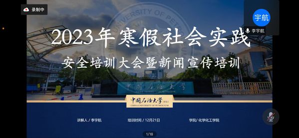 为鼓励广大青年学生参与社会实践,引领广大青年学生在实践中感悟党领导人民建设祖国的伟大成就,同时保证在本次实践活动过程中参与团队队员安全,提升团队社会实践活动的品牌美誉度和社会影响力,太阳成集团tyc33455社会实践与志愿服务中心于2022年12月21日晚21点开展2023年线上寒假专项社会实践安全培训会暨宣传培训会,本次会议邀请学院社会实践负责人李宇航、传媒中心吴佳朔分别对参与本次专项社会实践团队进行安全、宣传方面培训,所有社会实践团队队长与负责宣传团队队员参加。