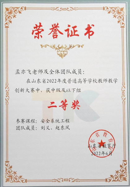 教学比赛方面,孟亦飞老师荣获山东省教师教学创新大赛二等奖;陈强老师荣获山东省讲课比赛三等奖。讲课比赛工作将教改成果落地到一线教学环节的“最后一公里”,能够在教学比赛中获得奖励,说明他们能够把先进的教学理念、教学模式、教学方法付诸于实践,也为其他老师提供了教学样板。