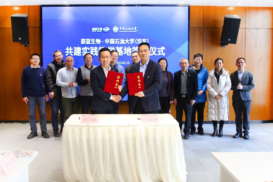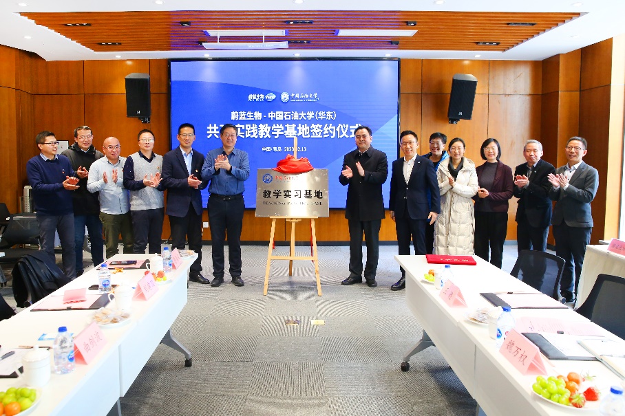 2月13日,太阳成集团tyc33455与青岛蔚蓝生物科技有限公司合作共建“教学实习基地”签约揭牌仪式在蔚蓝生物创新园B座会议室隆重举行。学院党委书记张永宁、副院长刘义,生物与能源化工系党支部书记曲剑波、副主任王小强以及部分教师代表参加仪式。蔚蓝生物总裁陈刚、党委书记安可明、首席科学家王华明与凌红丽出席签约揭牌仪式。