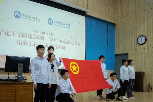 为了深入学习贯彻习近平新时代中国特色社会主义思想和党的二十大精神,更进一步地落实我校“青马工程”开展,培养广大团员树立团员青年意识,增强团员队伍先进性。3月4日,学院于唐岛湾校区南教100报告厅举办了第28期青年马克思主义者基础培训班“迈上新征程,迎接新挑战”主题团课。本次团校课程邀请了马克思主义学院副教授原丽红主讲,由化工2103团支部的韩忠海同学主持,学院本科生22级全体成员共526人参与。