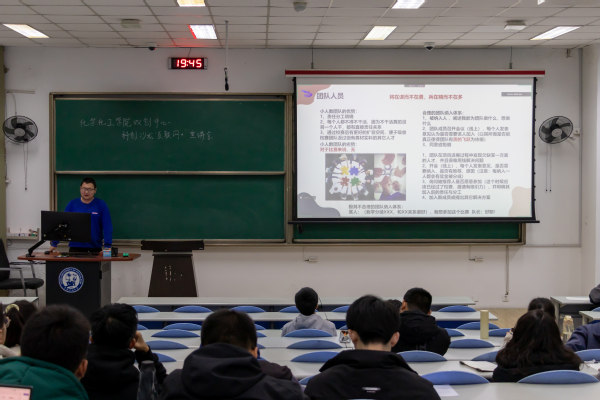 接下来,郭庚辰从队伍选择,比赛答辩,导师选择等角度,以幽默诙谐的讲述方式,为在场学生深度剖析了大赛成功的关键,活跃了现场气氛。在队伍选择这方面,郭庚辰幽默风趣的讲述了自己的经历,并告知同学们选择参赛队伍时要仔细思考队员人数,队员选择以及哪些队员可以做什么,形象的解释PPT中的一个核心要点:“我们是打比赛,不是搞联欢会”。他指出:“将在谋而不在勇,兵在精而不在多,合理的团队纳入体系是真正使得团队有质的飞跃的重要前提。”活动进入提问环节,在场学生们热情高涨,田张裕和郭庚辰对学生们提出的问题作出一一解答,并表达对太阳成集团tyc33455未来此类大赛再创佳绩的展望,现场掌声雷动。“听完这次经验分享交流会,我更加坚定了参赛的决心,在科研道路上也有了更加明确的方向,学长学姐们惟真惟实、认真钻研的精神给了我极大的鼓舞。”活动结束后,化工22级学生祁亚楠表示受益匪浅,本次宣讲活动让她更加坚定了参赛的决心。