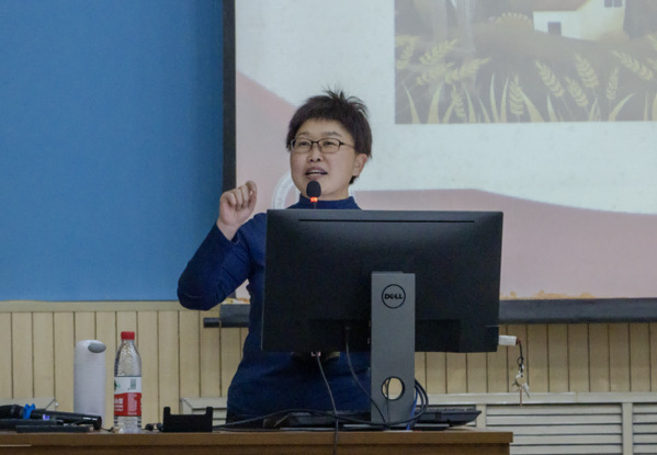 课程伊始,全体成员奏唱共青团团歌,以示对共青团的敬意。在团总支书记贾学敏为全体成员强调团校培训纪律后,原丽红开始了她的课程。首先她提出“不谋全局,难谋一域”,中国共产党在时空变化下审时度势、举旗定向、继往开来,在实践中寻找中国道路的答案。接着,她为我们解读了二十大报告的主要内容:一、回应“世界之变、时代之变、历史之变”——明确宣示新征程;二、“六个必须坚持”——开辟马克思主义中国化时代化新境界;三、“坚定历史自信,增强历史主动”——新征程的精神状态。其中她提到:“二十大报告分为三个板块,其中总论包括主题词和前三部分,是二十大报告中最为重要的内容。以中国式现代化全面推进中华民族伟大复兴,是贯穿二十大报告的主线。”党的二十大明确宣示了全党全国各族人民迈上了全面建设社会主义现代化国家的新征程,我们必须坚持习近平新时代中国特色社会主义思想这一指导思想,保持战略定力,坚持六个“必须坚持”,创造人类文明新形态。新征程需要中国特色的教育革命,同时这也是时代所向、人民所需、团结所系。