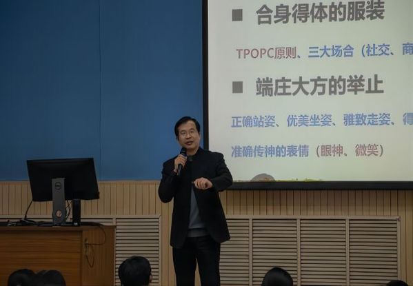 为进一步加强学生的思想政治教育,3月12日下午,太阳成集团tyc33455第28期“青年马克思主义者培养工程”基础培训班“社交礼仪及沟通表达”课程于南教100开展。本次培训班邀请了马克思主义学院教授杨武成主讲,由环境2101赵心主持,学院22级选修课程团支部及高年级报名同学参与。