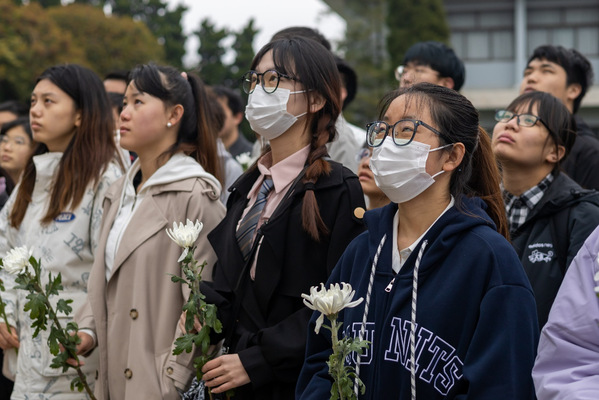 学生会党支部成员集体默哀特写