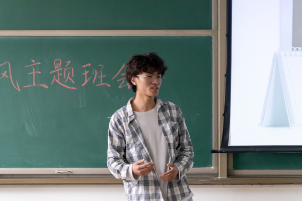 本次会议一共分为四个部分。首先,由学习委员任戊辰针对大一上班级总体学习情况进行汇报。他分别从学习建设、学风建设、未来建设以及全面发展这四个方面入手,在与其他班级的成绩对比中发现本班的优点与不足。他深刻指出,班级中优良学生多而优秀学生较少,但是中间层次同学具有较大潜力,并据此提出合理可行的班级目标。同时,任戊辰及其他班委根据班级实际情况制定了一项特色学习策略—“小组自习大pk”,即在班级内挑选学习成绩优良,课余时间充裕的部分同学成立学习先锋小队并担任小组长,通过上传朗诵英语视频、自习拍照打卡等方式督促同学们每日学习。并对每组的自习时间及自习效率进行量化,评定自习最优小组,发放奖励,以提高同学们的学习积极性,助其养成乐于探讨、持之以恒的良好学习习惯。此外,他还建议同学们关注“石光”活动,重视第二课堂的参与度。
