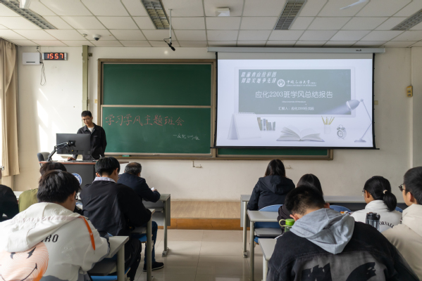 为全面提升同学们的成绩,更好地开展班级学风建设,4月13日下午,应化2203班在南堂120开展了班级学风报告会暨学习学风建设班会。本次会议邀请了班主任石斌、班导师吴萍萍以及班助孙正洋,全体同学参与。