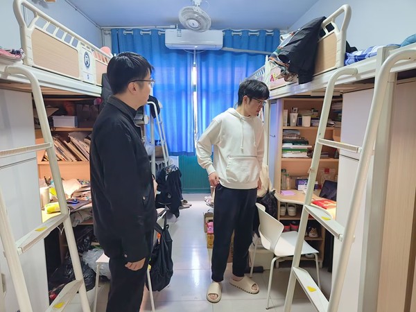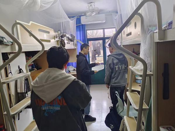 各年级辅导员详细的检查了学生宿舍是否存在私拉电线、违规使用电器、宿舍内抽烟及存放易燃易爆物品等宿舍安全问题,针对检查过程中发现的问题和隐患提出立整立改的要求。通过列举校园生活中常见的火灾情况,讲解引起校园火灾的诸多原因,向学生介绍有关火灾逃生的方法,强调要把安全隐患杜绝在萌芽之中,提升学生在发生消防安全问题时的应对能力。同时,对学生进行网络防诈骗教育工作,提醒学生谨防网络诈骗,不要轻易进行汇款转账。2019级辅导员王兆兴表示:“通过深入学生宿舍,对学生进行安全教育,让学生可以更深刻认识到宿舍安全隐患的危害,提升学生在出现消防安全问题时的应对能力。”