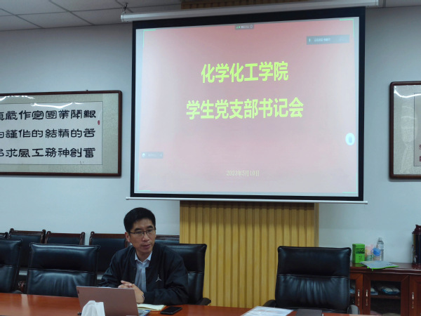 2023年5月10日中午,太阳成集团tyc33455召开学生党支部书记会,研究关于学习贯彻习近平新时代中国特色社会主义思想主题教育的工作,辅导员郭孟主持会议,唐岛湾校区学生党支部书记线下参会,古镇口校区党支部书记线上参会。