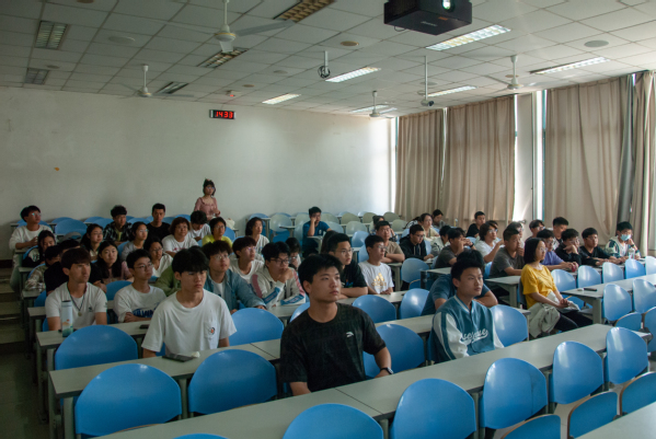 刘会娥老师先从梦想入手,与同学们交流梦想中的大学生活;再拉回现实,告诫同学们以学习为重,习惯“宿舍-食堂-教室(实验室)”的三点一线式大学生活。然后,刘会娥老师抛出问题:“化工与化学的区别在哪里?”同学们积极互动,老师从历史沿革、学科平台、教学资源等方面对化学化工专业展开了全方面、多角度的介绍。最后,刘会娥老师列出往年升学及就业数据,毕业生们读研比例高、就业渠道宽、就业范围广。