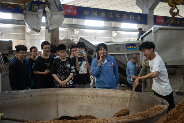 会谈期间,青岛琅琊台集团人力资源部副经理高洪蕊带领学生观看了青岛琅琊台集团企业宣传片,宣传片播放完毕后,由集团成员陈燊君详细的讲解了生物酿造的相关知识,拓宽了全体师生的知识面,讲解完毕后,全体师生进行了白酒品评,按照讲解的步骤,一看,二闻,三品,切身体会到了来自白酒的香醇,同时也了激发了学生们对酿造企业的浓厚兴趣。随后,由讲解员陈琦带领学生们来到了科技馆,以实物生动形象的讲解了生物酿造在生活中大大小小各方面的应用,之后,从白酒的最初酿造形态——粮食出发,参观队伍依次来到了粮库,制曲地,酿酒车间,南院展厅,参观结束后,学生们对生物酿造的过程有了更加深入的了解。