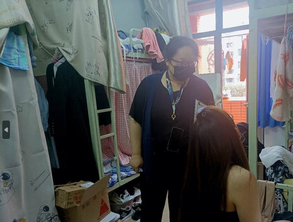 宿舍是学生的集体生活场所,也是助力学生健康成长,形成良好思想品德和生活学习习惯的重要环境。此次检查着重看各宿舍是否认真执行宿舍相关管理规定,做到人走断电,宿舍卫生是否干净、物品摆放是否整齐,并要求学生及时处理生活垃圾,定期开窗通风。窦雅琴对发现的问题要求学生们做到即知即改、立行立改。在走访过程中,窦雅琴深入了解学生日常学习、生活情况,并要求同学们要自觉遵守宿舍规定,规律作息,合理安排时间,确保个人的身心健康,投入期末考试的复习中。