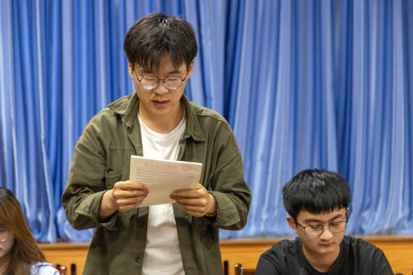 大会伊始,主持人国浩在清点人数后向全体参会人员宣读预备党员转正流程。根据大会议程,首先由4名预备党员依次宣读《入党转正申请书》,简明扼要地汇报了在预备期间的表现,肯定进步与成绩,找出缺点和不足,表明自己的态度和决心,真诚地表达了对党的忠诚和向往之情。“在预备役期间,我一直按照党员的标准严格要求自己,加强政治理论学习,对工作积极主动、勤勤恳恳、认真负责,能够做到谦虚谨慎、戒骄戒躁。”李晰然客观地总结一年的预备党员生活经历,表明她在积极入党过程中得到了很大程度的提升。之后由其入党介绍人介绍预备党员考察情况与意见。与此同时,在座党员同志依据预备党员的综合情况进行具体讨论,指出预备党员的优缺点,其中贾学敏对纪世新同志进行了高度肯定的点评,通过阐述在点滴小事上的改变和学习成绩的进步,表明了他对纪世新同志成为正式共产党员的支持。最后,经支部大会逐一讨论、表决,最后以无记名投票的方式同意4名预备党员的转正申请。国浩还带领支部党员进行了入党宣誓。