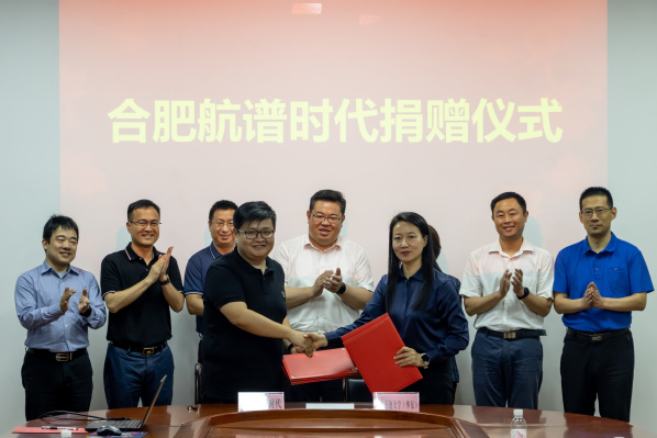 王效美、韦军代表校企签署奖学金及设备捐赠协议。根据协议,合肥航谱时代科技有限公司资助10万元奖学金以及价值200万元制冷型红外成像仪1台,支持学院相关专业的人才培养。王效美向高瑶颁发捐赠证书。刘义、吴茂胜代表校企签署共建联合实验室合作协议,以此促进提升学院人才培养质量,实现高质量发展。
