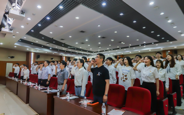 出征仪式上,全体参会人员共同观看微党课《决心书里的青春担当》视频,从炼制系首届毕业生和当代化院学子两个时空两代人对党朴实而坚定的深深情谊中,感受一代代青年学生“承诺在一时,践行在一世”的青春担当。