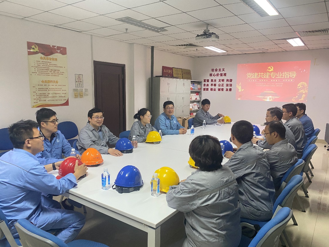 首先,炼油二部党支部书记曲铭卿对化学工程系党支部教师的到来表示欢迎,他提到,自进入5月中旬以来,青岛炼化检修改造项目陆续展开,施工工期仅55天,目前进度良好。支部通过在检修改造施工中锤炼党员党性、开展理想信念教育等措施,充分把党支部的战斗堡垒和党员的先锋模范作用发挥出来,确保了检修改造项目建设高质量推进。然后,化学工程系党支部书记于筱溪介绍了支部的基本情况,分享了化工系党支部作为教学基层党支部在党务和党建工作方面的经验。最后,在技术人员的带领下,党员教师参观了炼油二部装置区,近距离的了解检修过程,加深了工艺流程的了解,观察了反应器、精馏塔等内部结构。