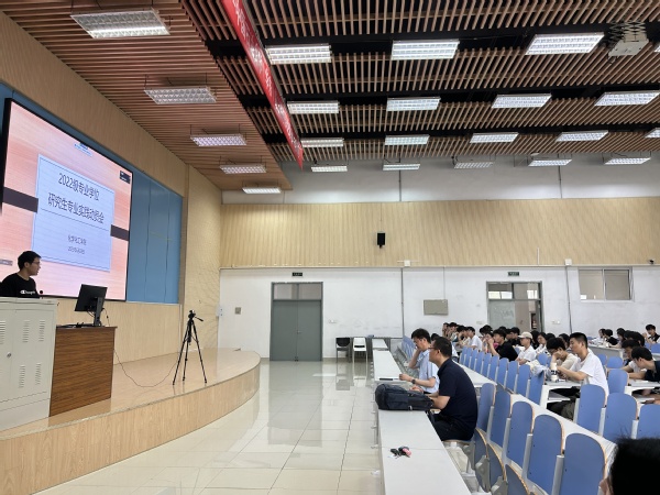 会议伊始,刘东向同学们介绍了学术型研究生和专业型研究生在培养目标、能力要求、服务面向和培养方式等方面的区别,着重强调了专业学位研究生的培养方案。他提出,专业学位研究生不仅要扎实开展科研工作,完成毕业论文,同时更要注重专业实践能力的培养,积极参与企业实习,真正做到学以致用,学用相长。随后,姜宁馨就学校对专业学位研究生实践环节的管理与考核方案进行了详细的讲解,要求同学们结合实际情况,及时确定实践单位,认真参与实习活动,并针对实习相关安排与同学们进行了互动交流。最后,韩丰磊以近期发生的安全事故为例进行讲解,通过理论与案例相结合的方式,从什么是安全、什么是风险、风险的管理、安全管理体系四个方面对同学们进行了安全培训,他嘱咐同学们实习期间,一定要提高自身的安全管理,增强自身的安全意识,做好自我保护工作。