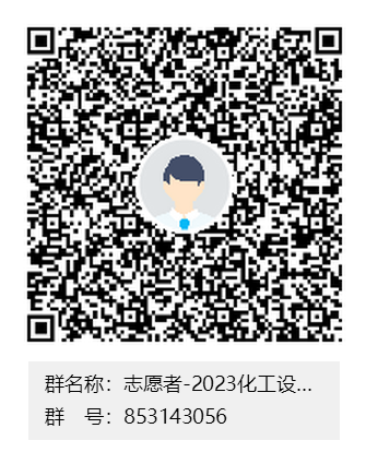 2023年7月25日前,拟报名同学填写第十七届全国大学生化工设计竞赛志愿者报名表(见附件1),以“专业+姓名”命名,发送至邮箱hyshsjzyfw@163.com,并加入志愿者通知QQ群:群名称:志愿者-2023化工设计大赛,群号:853143056,后续工作将在QQ群内直接通知。
