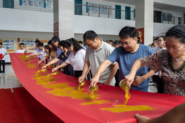 学院领导与专业教师共同为启动仪式洒金