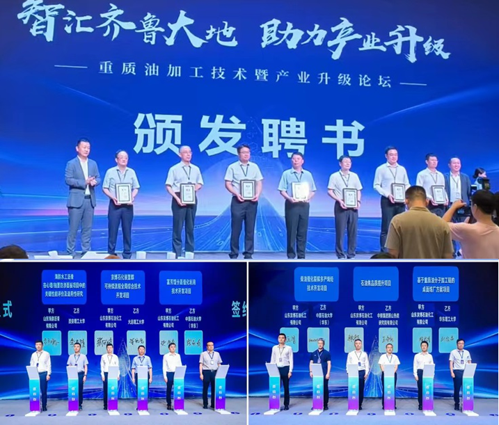 重质油全国重点实验室杨朝合教授、刘晨光教授受聘为山东省重质油加工技术创新中心专家委员会委员。同时,刘熠斌代表催化反应工程团队、柴永明代表绿色能源化工团队与京博石化,在重质油加工新技术方向进行了项目现场签约。