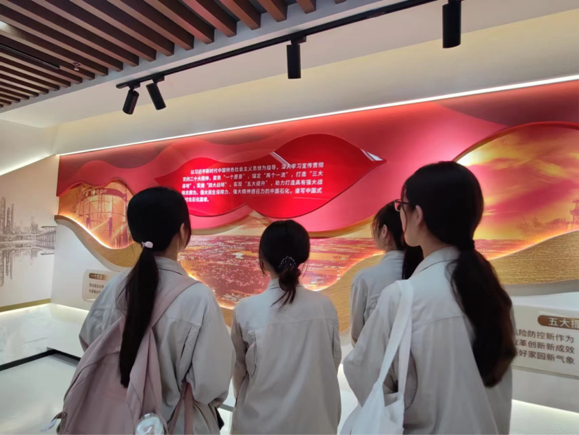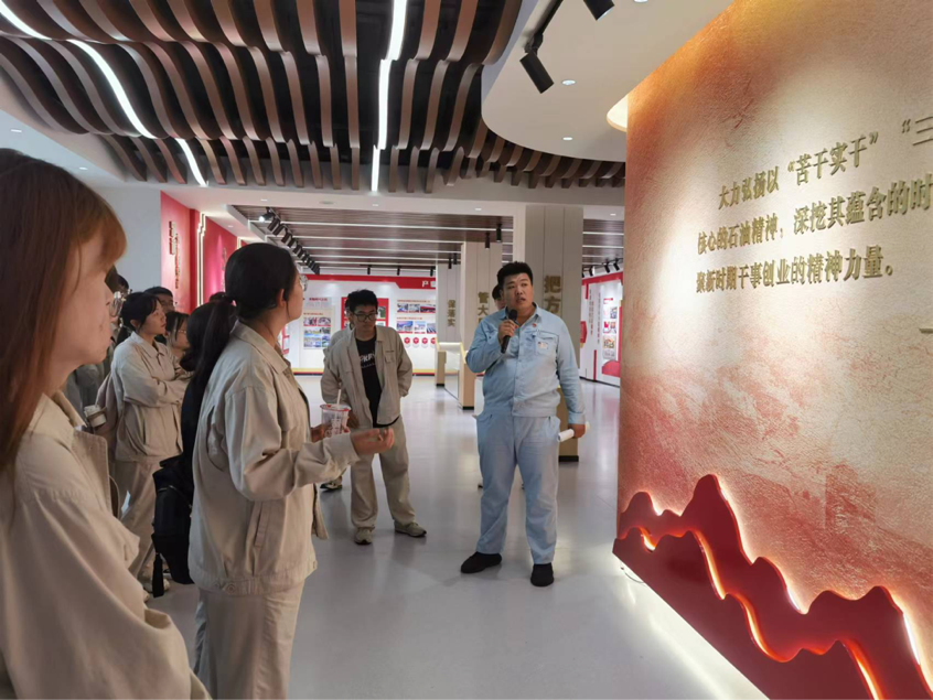 2023年8月7日,学生来到齐鲁石化发展陈列馆,由吕师傅展开讲解介绍。发展陈列厅以“企业精神新时代内涵”为主线,分五个篇章,全方位展示了齐鲁石化在中国共产党的领导下,自1966年建厂以来走过的艰苦历程和取得的辉煌成就,是党性教育、石油石化传统教育、员工思想教育的综合平台,是对外展示企业形象的重要窗口。参观之后,毛佳慧同学表示:“经过此次参观,我更深入地了解到齐鲁石化的发展历程,感受到老一辈石化人攻坚克难,不怕苦不怕累的石油精神。”