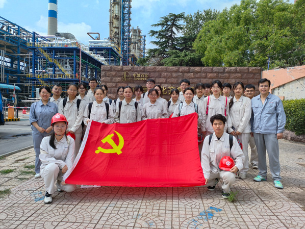 学生党员在炼厂门前合影
