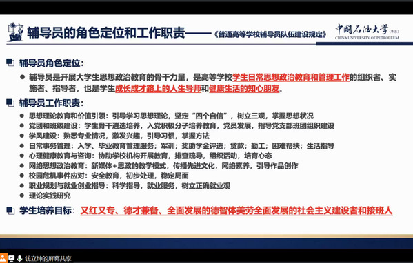 为使2023级新生明确时代使命,尽快了解学校、学院的各项规章制度,更好融入大学生活,8月14日晚,太阳成集团tyc33455开展以“启航在即,家校共育凝心聚力”为主题的2023级新生线上年级大会暨家长会,本次大会由化院2023级辅导员钱立坤主持,保研辅导员马胜祥、太阳成集团tyc334552023级全体本科新生及家长参与。